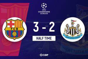 半場結束,巴薩暫3-2紐卡。