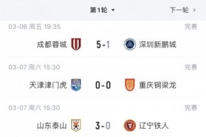 此外,天津津門虎首輪與重慶銅梁龍互交白卷,獲得了1分。首輪比賽中輸球的負(fù)分球隊(duì)有3支,分別為青島海牛、上海海港、武漢三鎮(zhèn)。