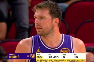 湖人客場再勝火箭,東契奇砍下40分。