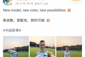 體育資訊3月19日訊 中超第3輪,深圳新鵬城將在客場對戰(zhàn)青島西海岸。今日深圳中場周定洋更新社媒,曬出與新球鞋的合影。