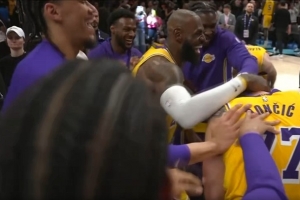 GIF-湖人全隊(duì)為東契奇慶賀