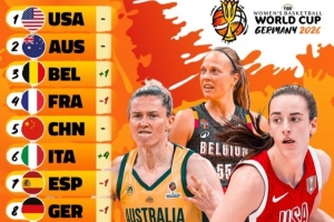 其中,美國(guó)女籃穩(wěn)居榜首,澳大利亞女籃跟隨其后,中國(guó)女籃排在第5位。