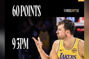 本場比賽,東契奇首發出戰37分36秒,30投18中,三分17中9,罰球19中15,砍下60分7籃板3助攻5搶斷(末節20分?。?,率隊取勝!