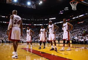 然而,邁阿密突然在外線找到了手感。巴蒂爾命中了三個三分球,雷·阿倫也命中了兩個。騎士隊則無法投進一球或搶到防守籃板。詹姆斯在第四節開始時連續命中了三個三分球,熱火隊以一波45-12的攻勢扭轉了比賽局勢。