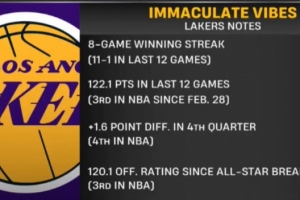 據(jù)統(tǒng)計(jì),球隊(duì)目前保持8連勝(近12場11勝1負(fù)),近12戰(zhàn)場均轟下122.1分(自2月28日以來聯(lián)盟第3),第四節(jié)凈勝分達(dá)+1.6(聯(lián)盟第4),全明星賽后進(jìn)攻效率高達(dá)120.1(聯(lián)盟第3)。
