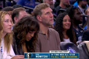 鏡頭捕捉到,獨行俠名宿諾維茨基來到現場觀看比賽。