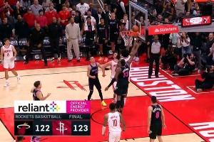 NBA常規賽,火箭123-122險勝熱火。