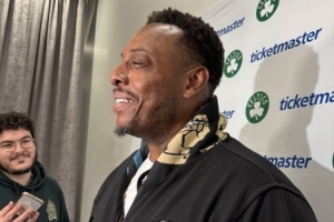 體育資訊3月23日訊 今天,凱爾特人名宿皮爾斯回到球隊主場參加活動。