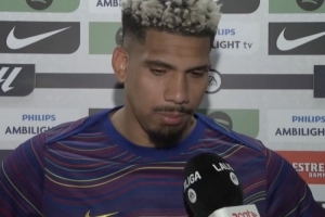 體育資訊3月23日訊 西甲第29輪比賽,阿勞霍破門,巴薩主場1-0擊敗巴列卡諾,賽后阿勞霍接受了媒體的采訪。
