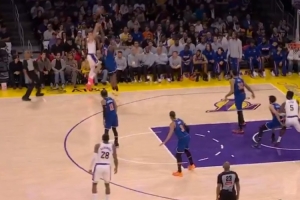比賽第三節(jié)東契奇面對阿努諾比的嚴(yán)防,命中了一個神奇的單腳漂移壓哨三分。談到這個球,東契奇說:“當(dāng)球離手的時候我感覺非常好,我不知道它會不會命中, 但是我感覺很好。”