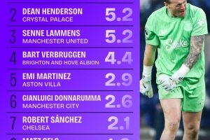 以下為本賽季英超門將阻止進球榜top10: