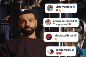 利物浦官方更新社媒動態(tài),曬出隊友們社媒留言致敬薩拉赫的合集。