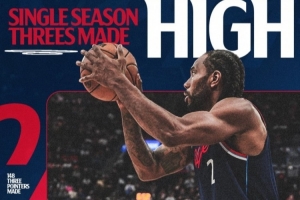 本場比賽過后,倫納德單賽季已經命中149記三分,創個人生涯新紀錄(此前紀錄為2016-17賽季的147記)。