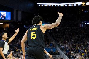 體育資訊3月26日訊 勇士主場109-106險勝籃網。賽后,勇士球員桑托斯接受媒體采訪。