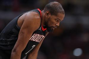 體育資訊3月26日訊 NBA常規賽,火箭客場108-110加時惜敗森林狼,賽后杜蘭特接受采訪。