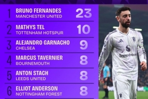 3月英超球員創造機會排行:B費23次居首,特爾、加納喬列二三位