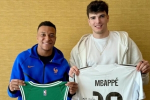 在活動中,姆巴佩和凱爾特人前鋒烏戈·岡薩雷斯兩人交換了球衣。
