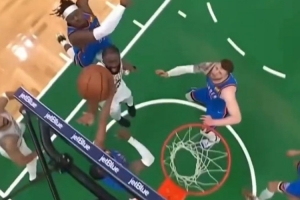 體育資訊3月27日訊 昨日綠軍119-109戰(zhàn)勝雷霆,賽后杰倫·布朗在直播時(shí)談到了本場多特對(duì)自己上籃的一次粗野防守。