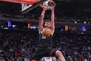 申京上半場出戰17分鐘7投5中拿到10分4籃板5助攻2蓋帽,正負值-2,多次上演暴扣。