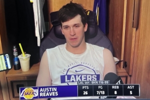 本場比賽,里夫斯出戰40分鐘13投7中,三分7中4、罰球11中8貢獻26分8籃板5助攻1搶斷,正負值+26最高。