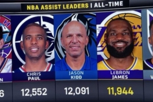 若要在本賽季超越基德,詹姆斯需打滿剩余8場且場均17.4次助攻