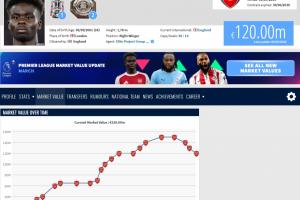 體育資訊03月09日訊 德轉更新英超身價,阿森納當家球星薩卡身價連續第三次下跌,來到1.2億歐。