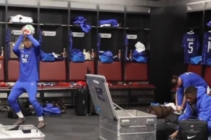 體育資訊3月31日訊 今日,法國足球國家隊(duì)官方發(fā)布了一個(gè)皇馬球星姆巴佩在更衣室里“投籃”的視頻。