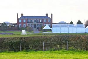 上周工人們在魯尼位于柴郡的價值2000萬英鎊的豪宅花園里搭建了這個大型結構,昨天還安裝了戶外取暖設備。