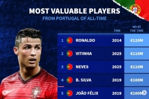德轉(zhuǎn)葡萄牙球員歷史身價榜: