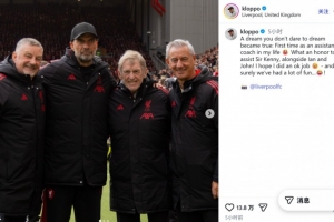 在社交媒體上,克洛普曬出了自己和達(dá)格利什、伊恩·拉什以及約翰·阿爾德里奇等3名利物浦傳奇的合影,他寫(xiě)道:一個(gè)從不敢奢望的夢(mèng)想成真了,這是我人生中第一次擔(dān)任助教。能夠與伊恩·拉什和約翰·阿爾德里奇一起協(xié)助達(dá)格利什爵士,我感到非常榮幸!我希望我的表現(xiàn)還算不錯(cuò)。當(dāng)然,我們?cè)谝黄鸲冗^(guò)了很多歡樂(lè)時(shí)光。