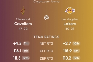 湖人凈效率+2.7聯(lián)盟第十,進攻效率115.9聯(lián)盟第六,防守效率113.2聯(lián)盟第19,戰(zhàn)績49勝26負。