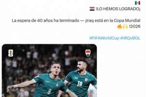 伊拉克時(shí)隔40年重返世界杯,伊拉克隊(duì)官方社媒用阿拉伯語(yǔ)、英語(yǔ)、西班牙語(yǔ)寫(xiě)道:“我們做到了,40年的等待結(jié)束,伊拉克晉級(jí)2026年世界杯!”