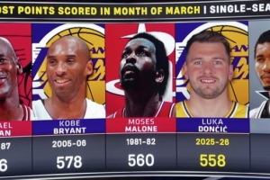 本場比賽過后,東契奇三月(當地時間)總得分達到600,是喬丹(676分)之外歷史上唯一在三月份總得分600的球員。