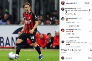 莫德里奇社媒曬出比賽照片,并寫道:“重要的勝利,全隊表現都很出色!加油米蘭!”