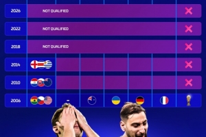 體育資訊4月2日訊 世預賽附加賽決賽,意大利點球大戰不敵波黑,連續三屆無緣世界杯。德國轉會市場盤點了2006年以來意大利的世界杯成績。