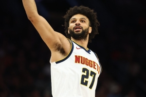 體育資訊4月2日訊 掘金客場挑戰(zhàn)爵士,穆雷首節(jié)命中半場壓哨三分。