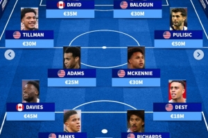 中場:蒂爾曼(3000萬歐)、泰勒·亞當(dāng)斯(2500萬歐)、麥肯尼(3000萬歐)、普利西奇(5000萬歐)