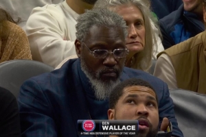 比賽期間,鏡頭捕捉到活塞名宿“大本鐘”本·華萊士來到現場。雖然須發皆白,但威嚴強硬的氣勢仍在。