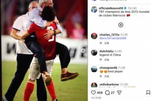 艾克森在社媒配文寫道:那年奪得了2013年亞冠聯賽冠軍,并參加了世俱杯比賽。