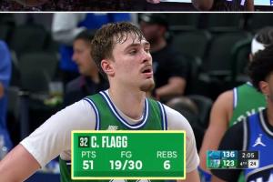 據統計,弗拉格成為了自2009年詹寧斯后首位砍下50+的新秀,當時代表雄鹿出戰的詹寧斯在09年11月14日對陣勇士的比賽,狂砍55分!