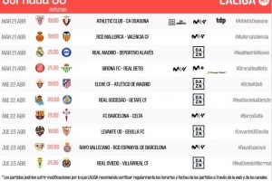 體育資訊4月4日訊 西甲官方公布了第33輪比賽開球時間,4月22日3點30分皇馬vs阿拉維斯,4月23日3點30分巴薩vs塞爾塔。
