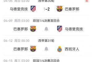 體育資訊04月05日訊 本輪西甲,巴薩2-1逆轉馬競。