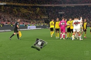 體育資訊4月5日訊 今天凌晨,多特蒙德在德甲2-0擊敗斯圖加特,在布蘭特進球后,斯圖加特球迷往場內扔折疊椅。