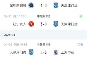 體育資訊04月05日訊 中超第4輪,天津津門虎主場2-3被上海申花逆轉,雖然球隊取得了賽季進球0的突破,但是仍1平3負積-9分中超墊底。