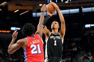 文班亞馬新秀年初遇恩比德,被恩比德得了70分。