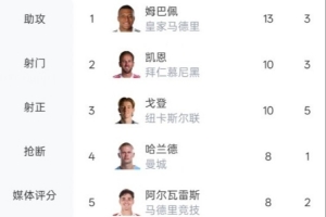 值得注意的是,數(shù)據(jù)統(tǒng)計(jì)顯示,本賽季歐冠到目前為止,射手榜和助攻榜前兩名都是這兩隊(duì)的球員(紐卡的安東尼·戈登與凱恩并列射手榜第二)