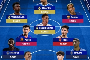前鋒:維尼修斯(皇馬,1.5億)、姆巴佩(皇馬,2億)、亞馬爾(巴薩,2億)