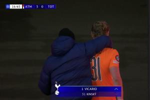 體育資訊03月11日訊 熱刺vs馬競,熱刺開場連丟三球,教練直接把門將金斯基換下。下場后金斯基直接進了通道,球隊的工作人員趕上去安慰他。