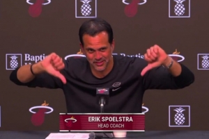 賽后,熱火主教練斯波爾斯特拉接受采訪時,記者表示:“接下來我要問一個跟阿德巴約無關的問題。”