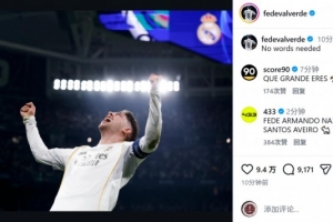 巴爾韋德社媒曬出慶祝進球的照片,配文:“無需多言。”